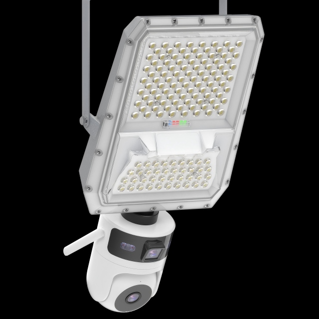 When motion is detected, the system increases light output and activates binocular camera recording. The dual-lens camera captures clearer images and wider viewing angles, improving detection accuracy and security effectiveness.