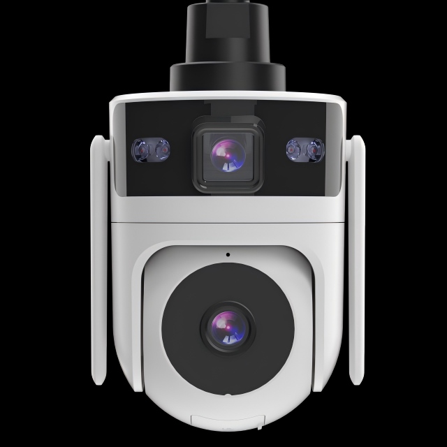 Dual-lens camera system offers wider coverage, improved image clarity, night vision, and intelligent motion detection.