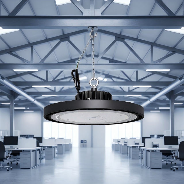 A high-intensity indoor lighting solution designed for large, high-ceiling spaces like warehouses, factories, and gymnasiums.