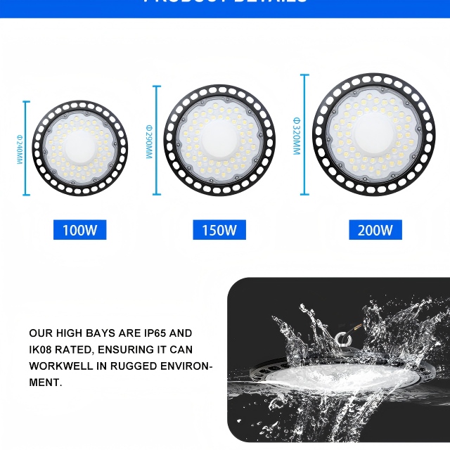Many models support 0–10V dimming or intelligent sensor integration, allowing for energy optimization, motion-activated lighting, and scheduled operations in warehouses, gymnasiums, and factories.