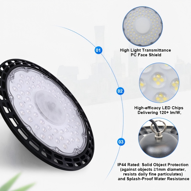A high-intensity indoor lighting solution designed for large, high-ceiling spaces like warehouses, factories, and gymnasiums.